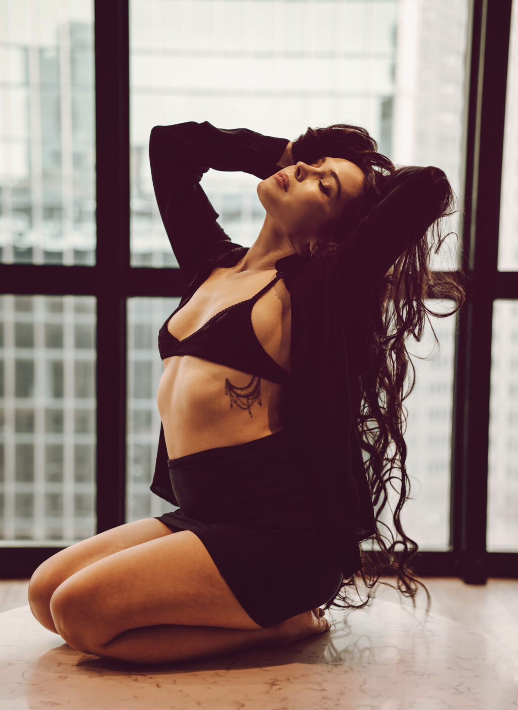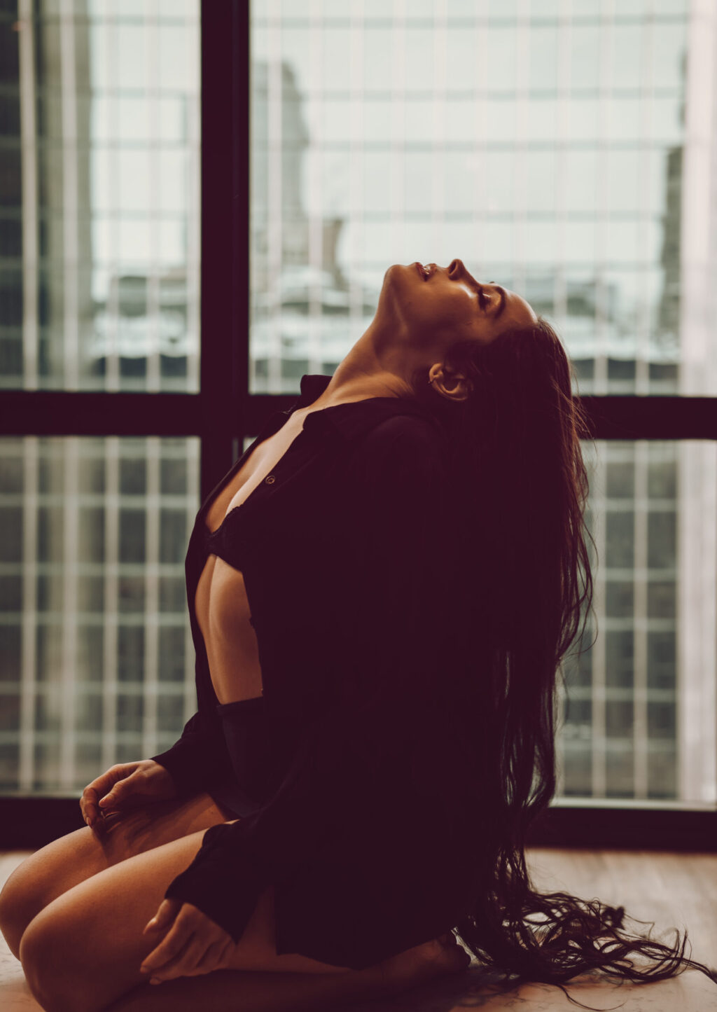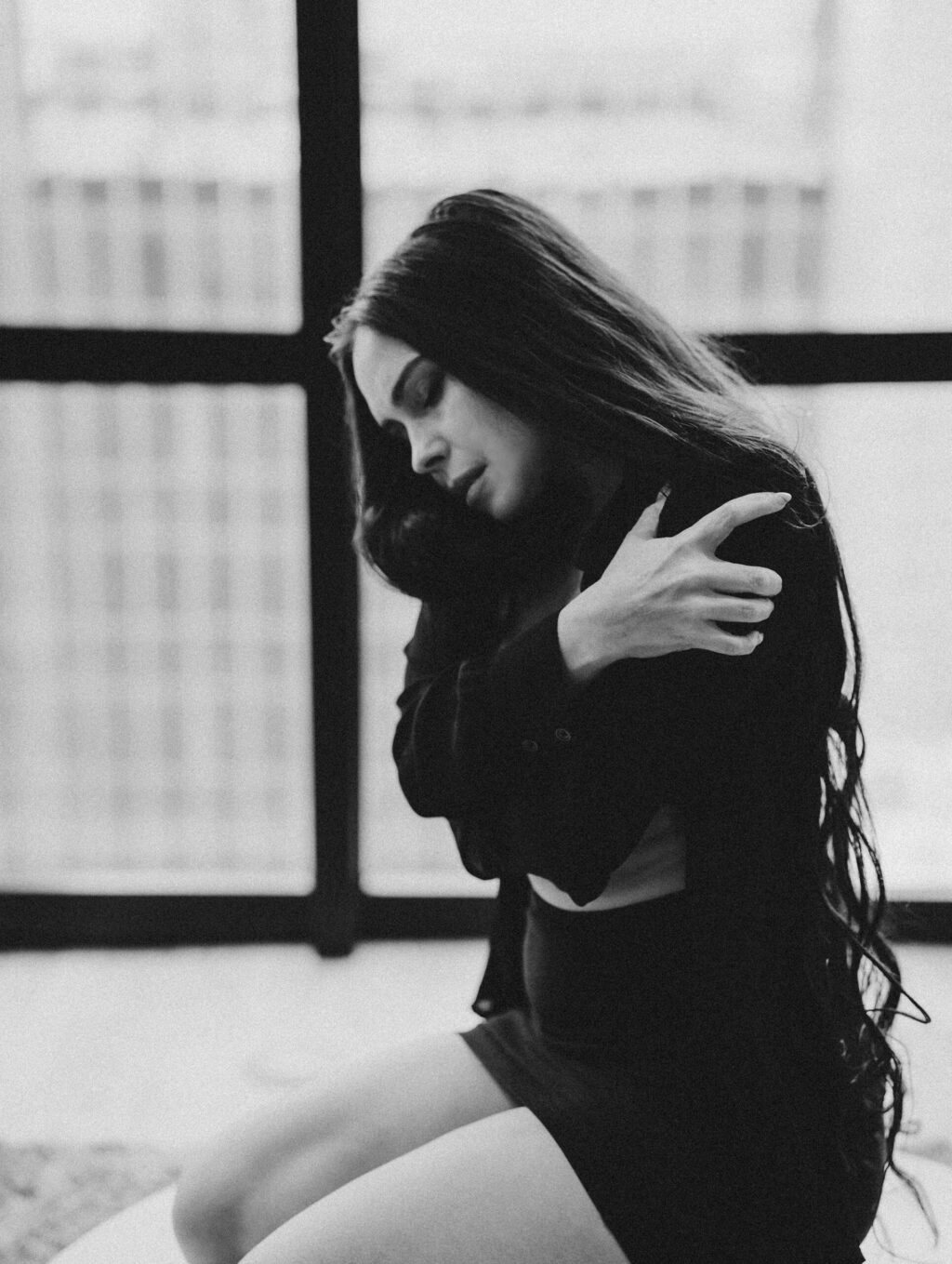 This shoot with Rachel was just what I needed to help break up this long winter. Gorgeous images with simple outfits and an emphasis on using the space. We’ve got floor to ceiling windows, rolling around on the floor, hair flipping, and lots of beautiful portraits. I like to say that I don’t do headshots but I do take one hellova good photo of a face!