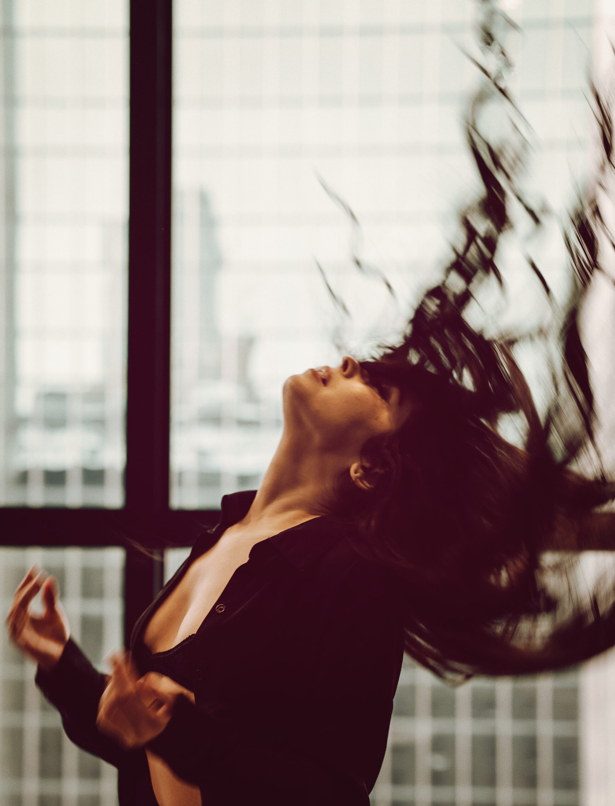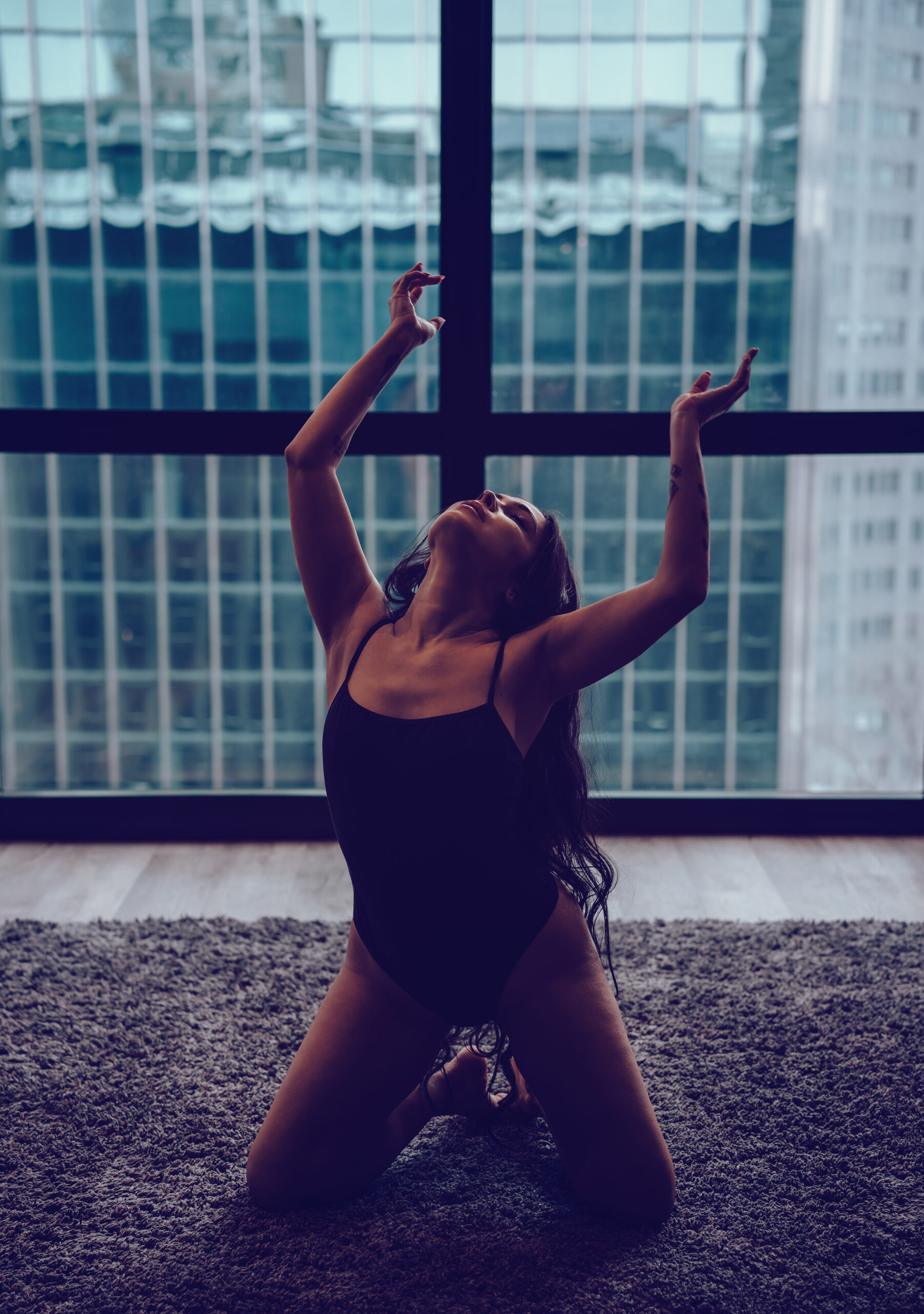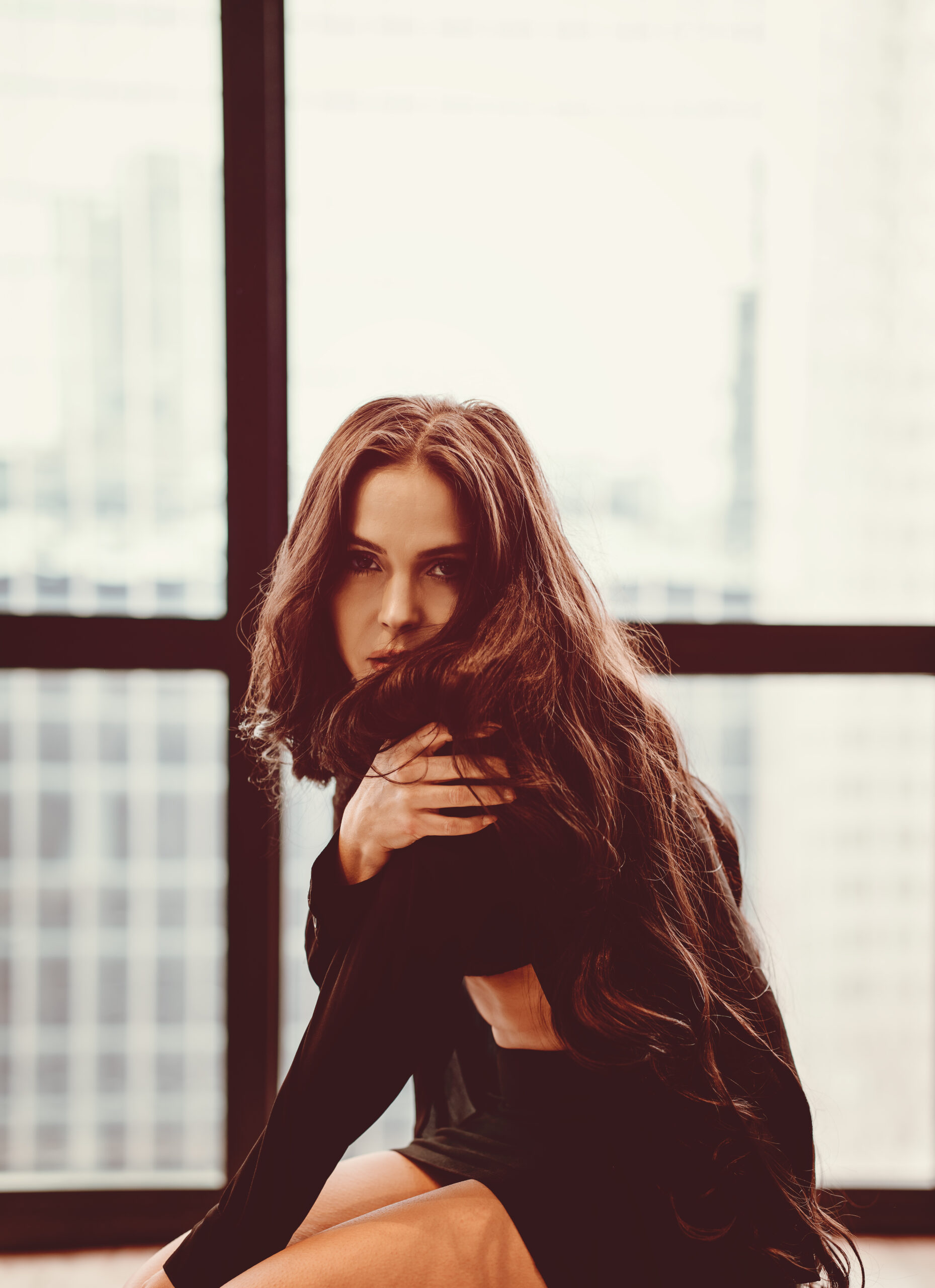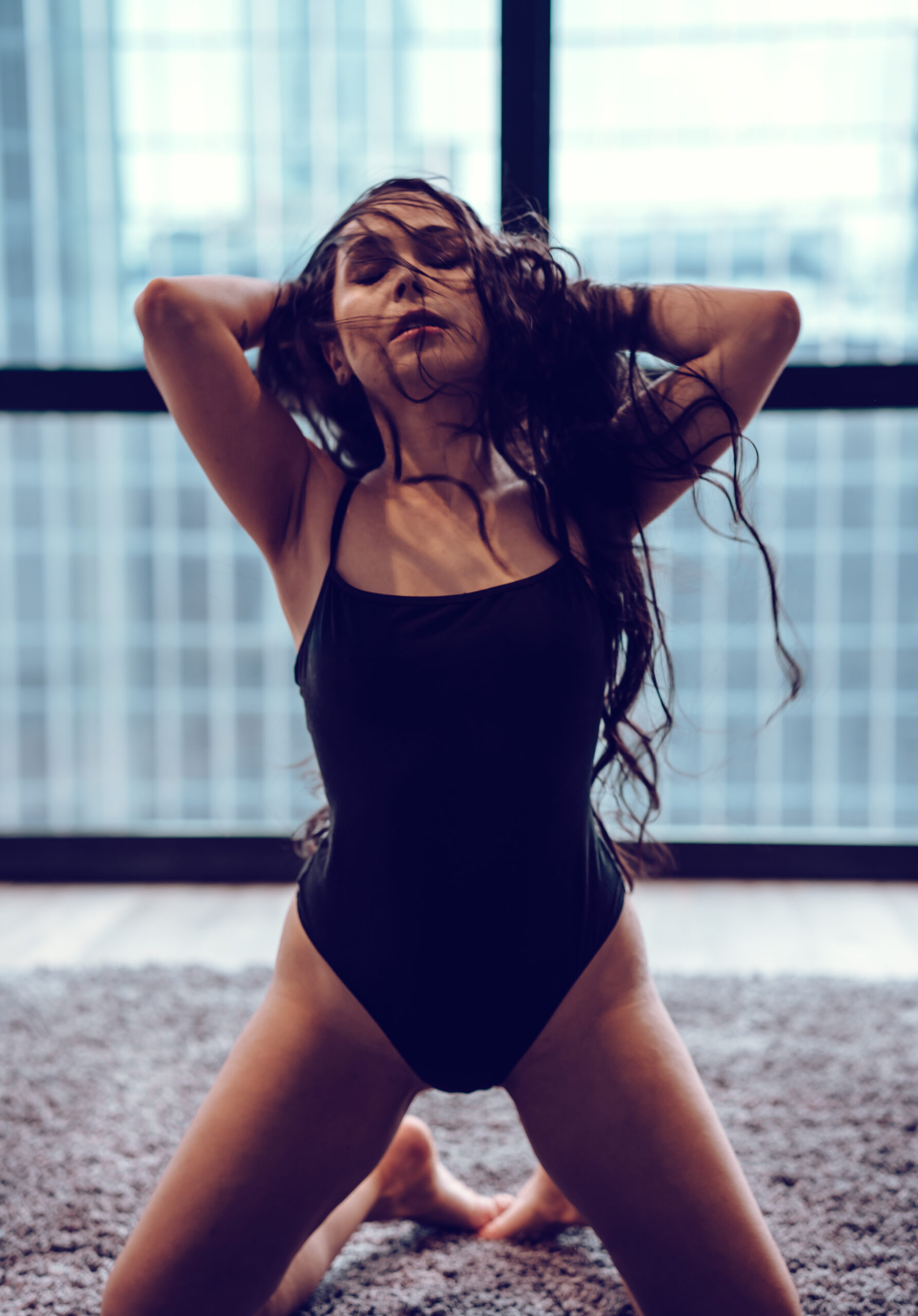 This shoot with Rachel was just what I needed to help break up this long winter. Gorgeous images with simple outfits and an emphasis on using the space. We’ve got floor to ceiling windows, rolling around on the floor, hair flipping, and lots of beautiful portraits. I like to say that I don’t do headshots but I do take one hellova good photo of a face!