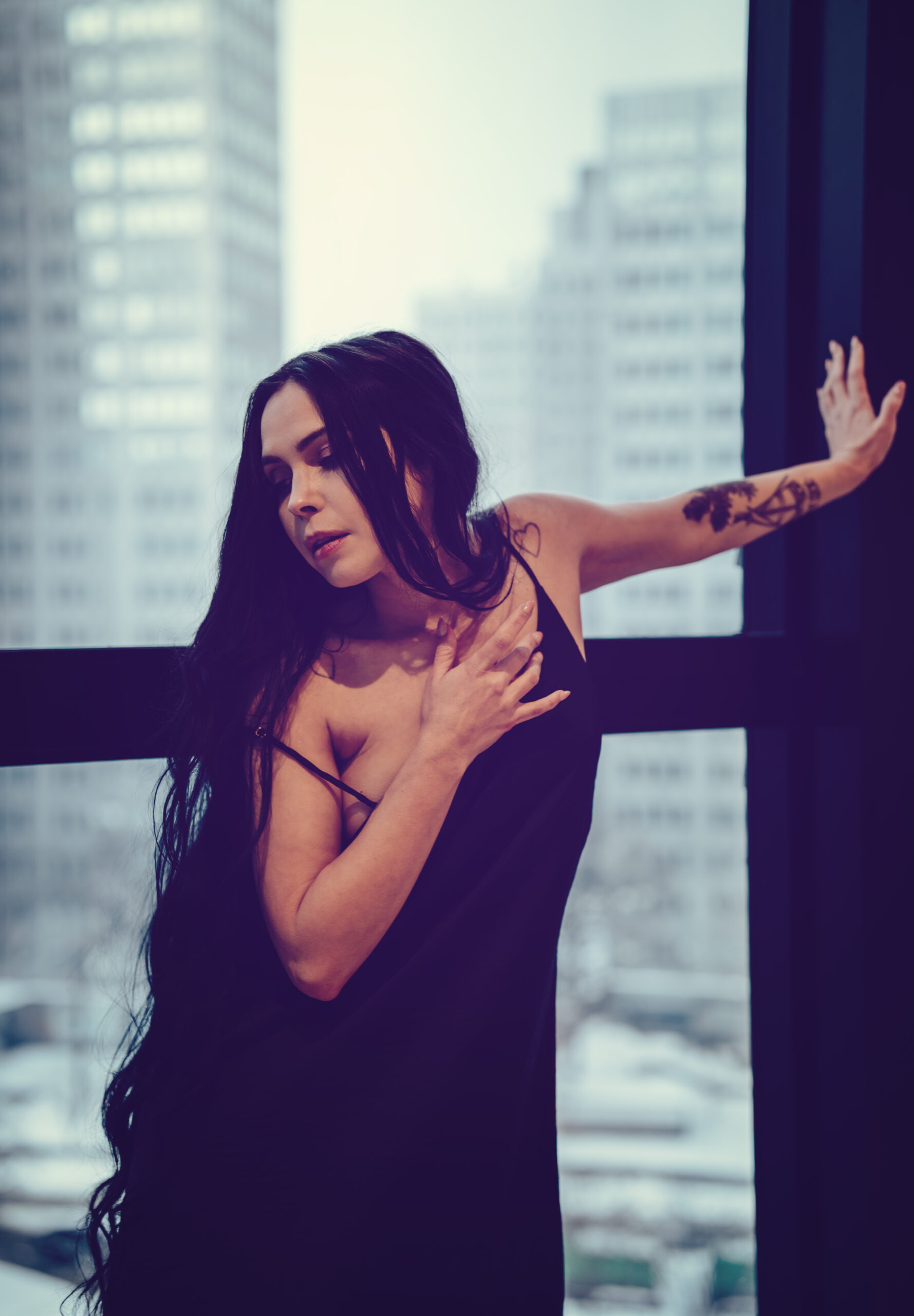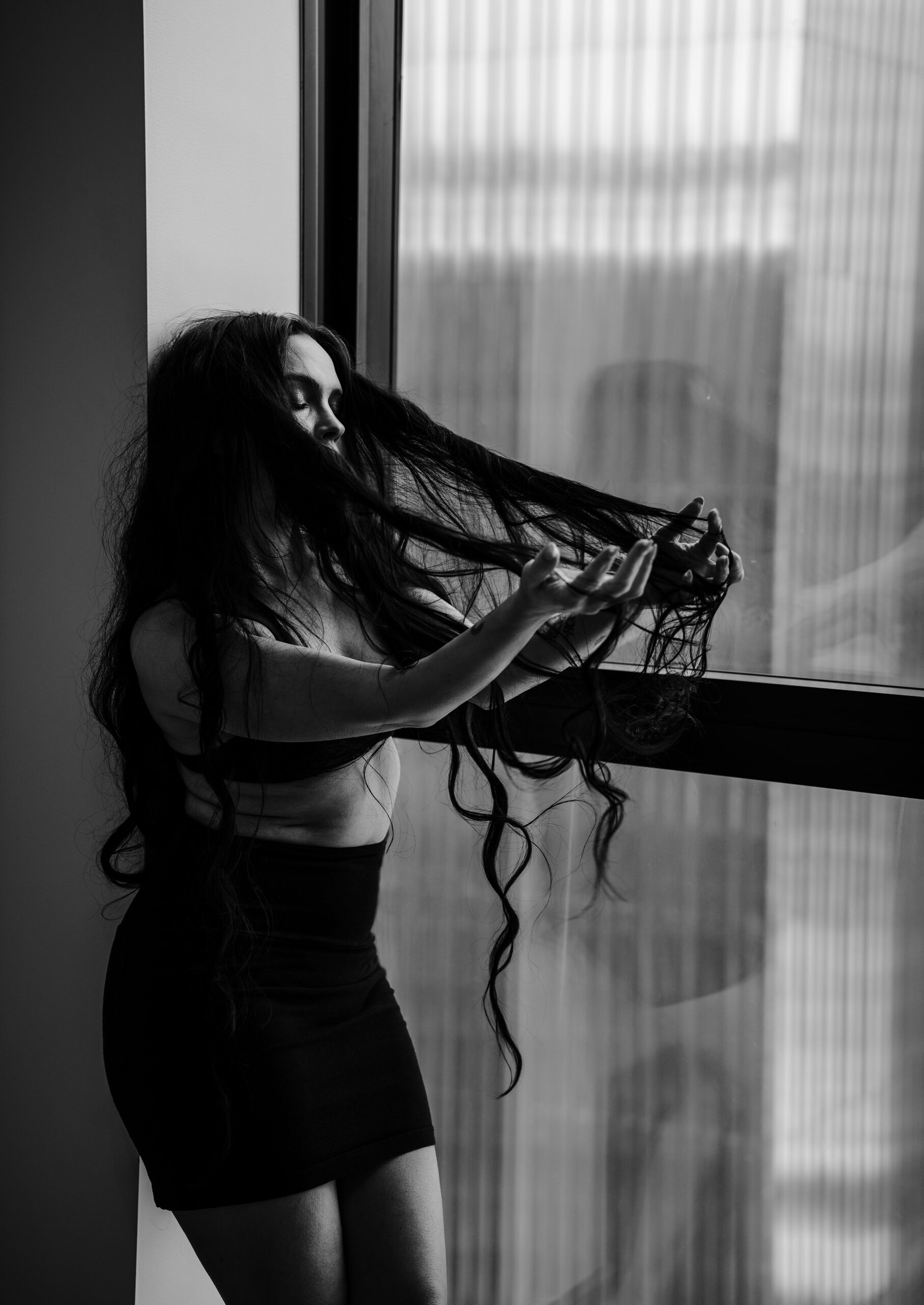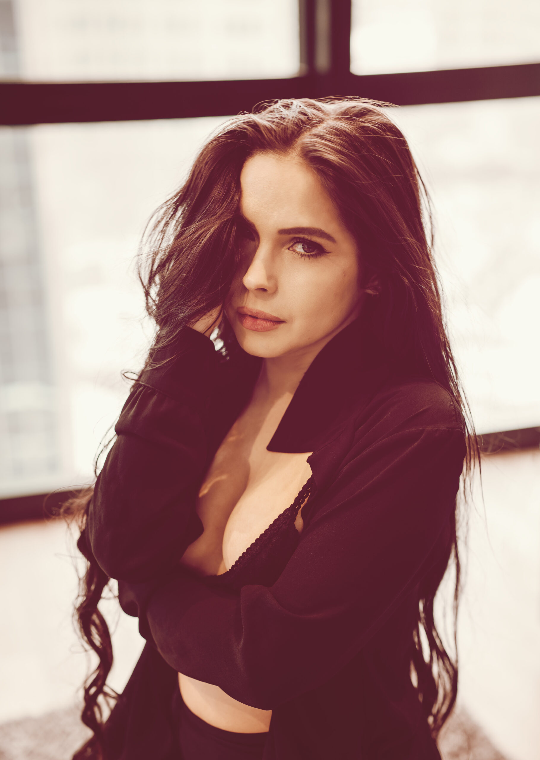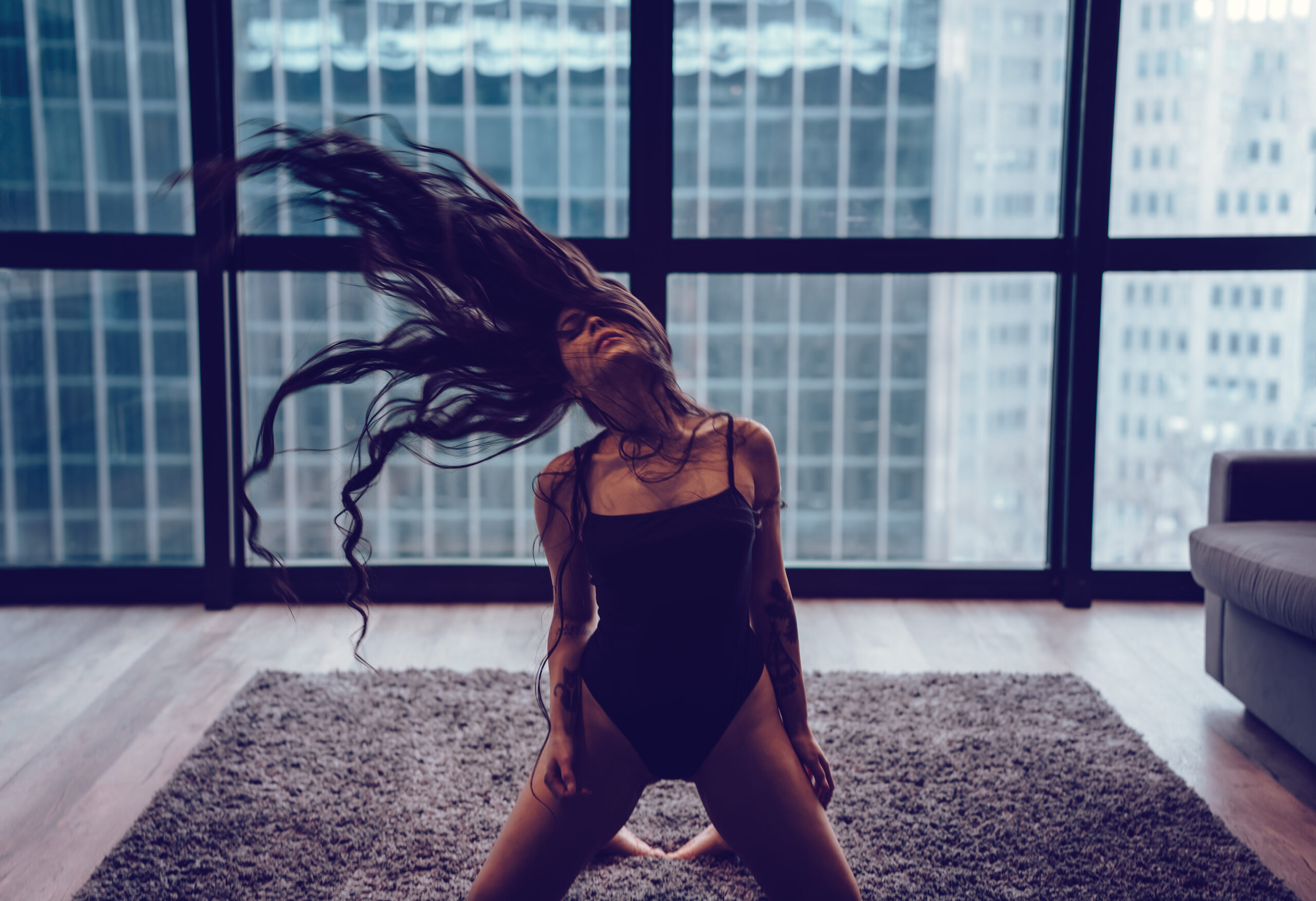 This shoot with Rachel was just what I needed to help break up this long winter. Gorgeous images with simple outfits and an emphasis on using the space. We’ve got floor to ceiling windows, rolling around on the floor, hair flipping, and lots of beautiful portraits. I like to say that I don’t do headshots but I do take one hellova good photo of a face!